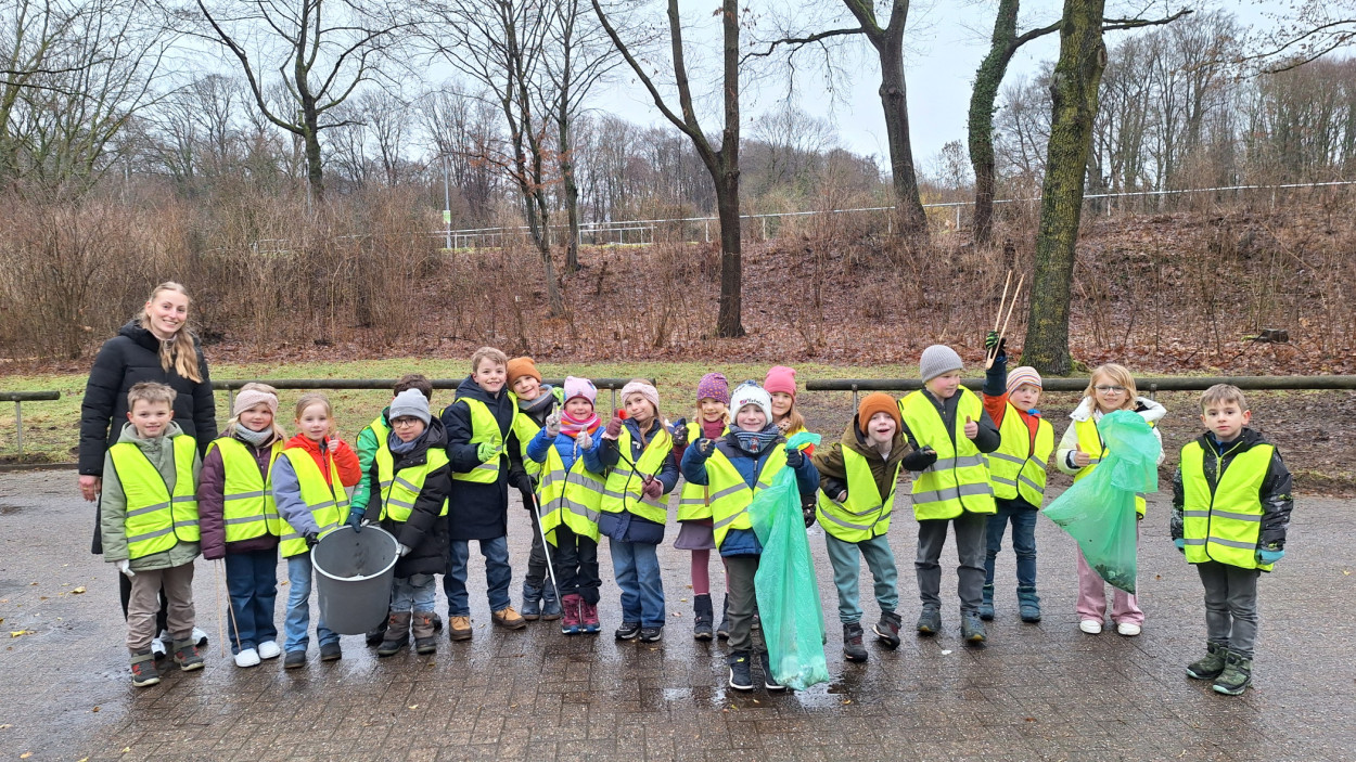 Aber Theorie allein wäre ja langweilig! Also wurde das Gelernte direkt in die Praxis umgesetzt. In den folgenden Wochen wurden die Kinder selbst zu kleinen Umwelthelden. Ausgestattet mit Handschuhen und wachen Augen sammelten sie Müll – nicht nur auf dem Schulgelände, sondern auch in Hagen. Mit großem Engagement trugen sie dazu bei, ihre Umgebung ein Stück sauberer zu machen und aktiv etwas für den Schutz von Tieren, Pflanzen und ihrer eigenen Zukunft zu tun.