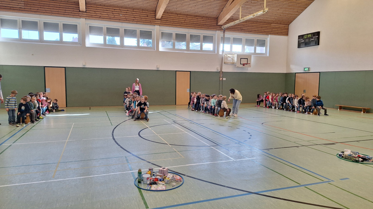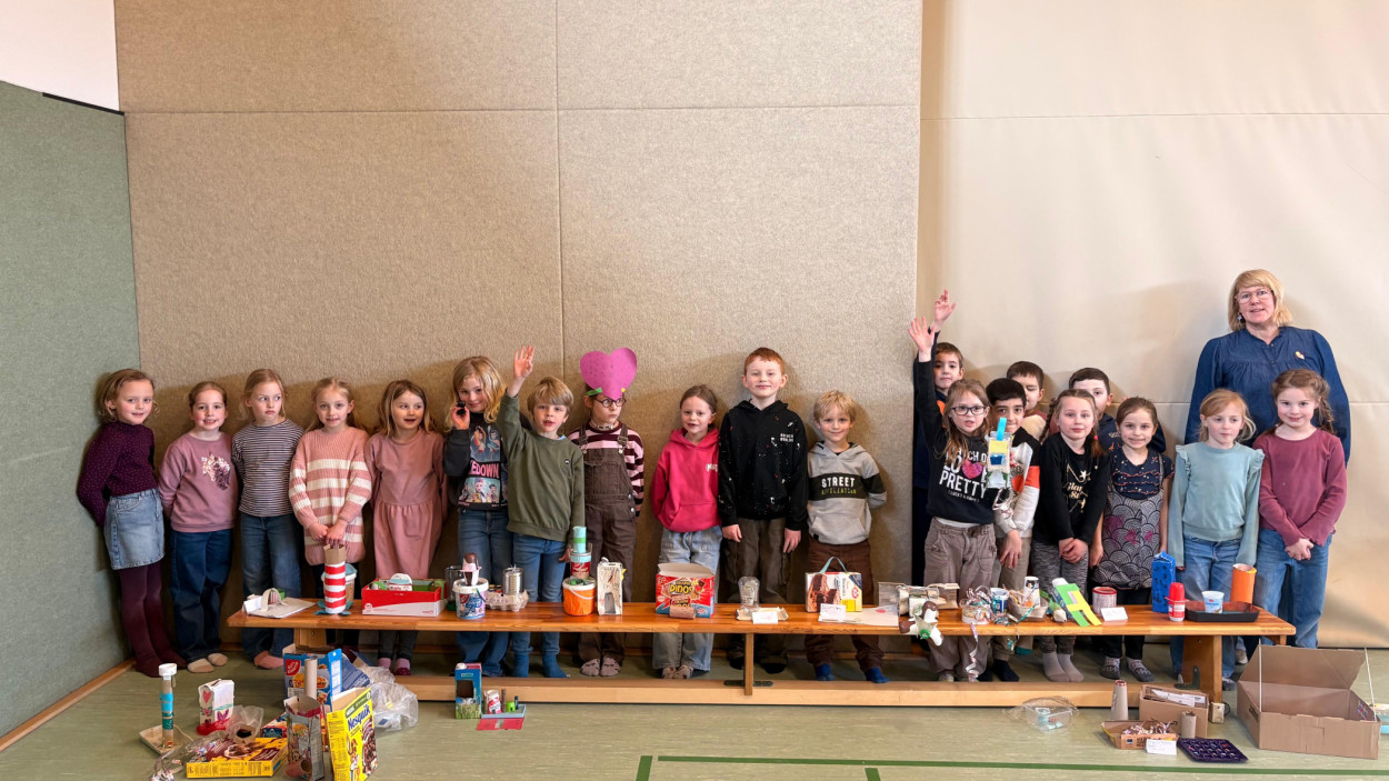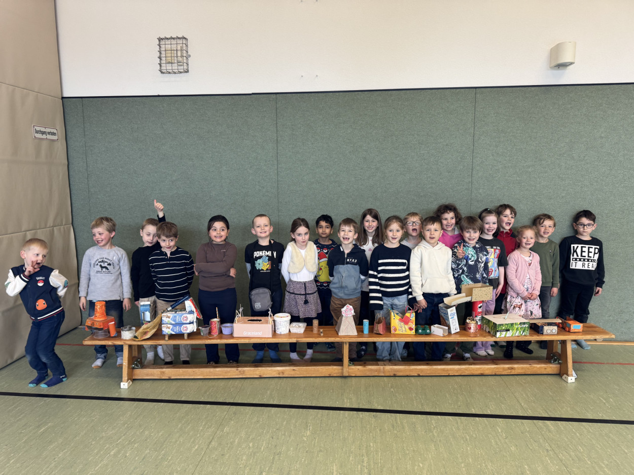 Der Höhepunkt des Projekts folgte in den letzten Wochen: das große Upcycling-Projekt. Aus scheinbar nutzlosem Müll entstanden kreative Meisterwerke. Alte Verpackungen wurden zu neuen Alltagsgegenständen, aus Weggeworfenem wurde Wertvolles. Mit Fantasie, Geschick und einer ordentlichen Portion Stolz verwandelten die Kinder Müll in kleine Schätze, die sie allen Kindern in der Turnhalle präsentierten – und bewiesen dabei eindrucksvoll, dass in jedem Stück Abfall auch eine zweite Chance steckt.